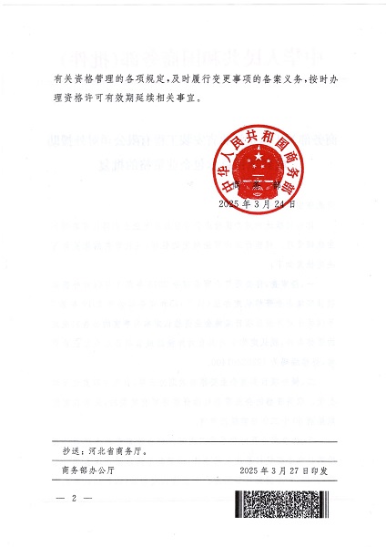 在公司國際化戰(zhàn)略的引領下,在公司領導的精準指導下,海外市場部攜手綜合辦公室、財務管理部、人力資源部等相關部門,歷經四個月的不懈努力,緊密協(xié)作,先后順利通過河北省商務廳的初步審核以及商務部的嚴格復核,成功斬獲對外援助成套項目總承包企業(yè)資格。這一重大突破,標志著公司在國際援助領域踏出堅實有力的一步,為加速“走出去”進程、拓展海外經營模式、開辟全新海外市場注入強勁動力。該資格的獲取,充分彰顯公司已具備獨立承接中國政府對外援助成套項目實施任務的雄厚實力。