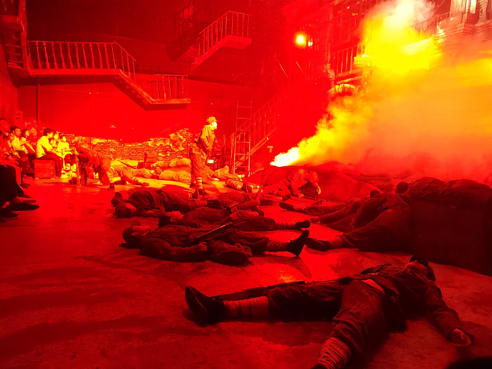 最后,大家一同觀看沉浸式演繹舞臺(tái)劇《石家莊·1947》,《石家莊·1947》采用沉浸式戲劇的表演形式,打造身臨其境的觀覽體驗(yàn),用鮮活的演藝去還原那段值得銘記的歷史。劇目總時(shí)長約60分鐘,講述了1947年石家莊解放前夕,地下工作者與國民黨之間一場(chǎng)緊張的情報(bào)戰(zhàn),主要分為“車站·搜捕”、“荒草地·協(xié)力”、“正太·絕境”、“魔窟·生死”、“黎明·總攻”等五幕演出內(nèi)容,通過戲劇、歌舞、跑酷、舞美燈光音響等表現(xiàn)手法,向觀眾呈現(xiàn)了我黨地下工作者為了將情報(bào)傳遞出城所做出的無數(shù)努力和犧牲。該劇通過舞臺(tái)和演出,將公司黨員干部帶回那個(gè)彌漫著硝煙的年代,去親歷那段殘酷的斗爭(zhēng),去感受那些赤誠的夢(mèng)想和熱血,去見證石家莊的解放。