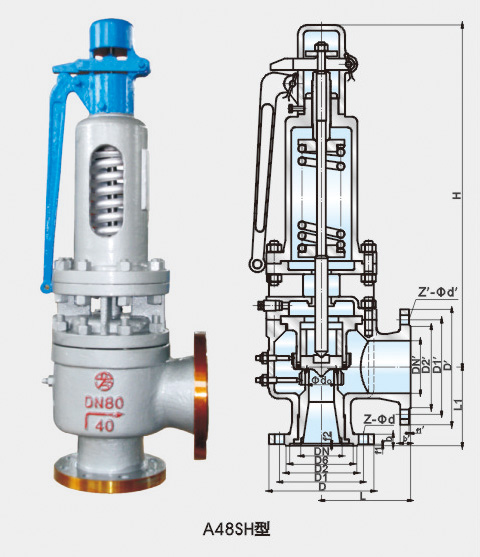 A48SH-16C~40型適用于工作溫度≤425℃, p A48SH-16I~40I型適用于工作溫度≤510℃,A48SH-16V~40V型適用干工作溫度≤550℃的蒸汽等介質的設備和管路上,作為超壓保護裝置。